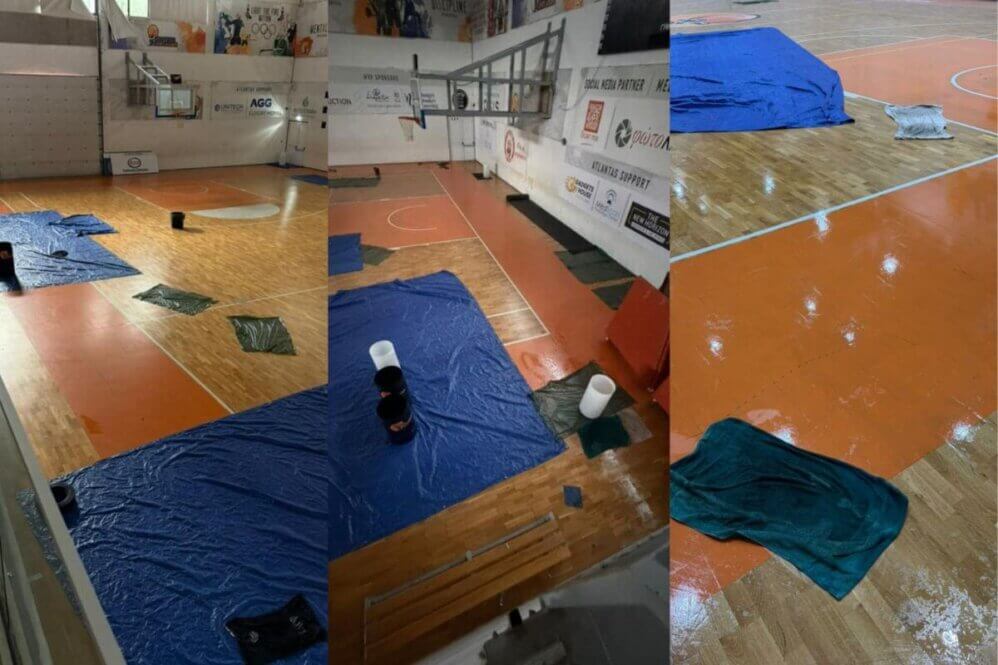 Προβλήματα, τα οποία είχαν αναγκάσει τον Άτλαντα (που χρησιμοποιεί σαν έδρα τη συγκεκριμένη αίθουσα), πρώτα να μεταβεί στο «Άκης Κλεάνθους» για την αναμέτρηση του Γυναικείου Πρωταθλήματος, με αντίπαλο την Αναγέννηση, ενώ και η Κυριακάτικη αναμέτρηση για τη Β1 κατηγορία Ανδρών, απέναντι στον Phoenix BC, καθυστέρησε να ξεκινήσει για μιαν περίπου ώρα, λόγω του ότι έσταζε νερό από την οροφή, όπως και για τον ίδιο λόγο, είχε προκύψει η αναγκαστική «μετακόμιση» για το Γυναικείο…