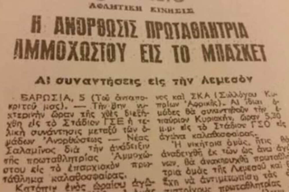 ➡️Χάριν στην ανακάλυψη του Κρις Αναστασίου, του παλαίμαχου καλαθοσφαιριστή της Ανόρθωσης, επί της πρώτης της εποχής, σήμερα το “BS” παρουσιάζει μιαν σπάνια φωτογραφία ή πιο εύστοχα ένα παλιό απόκομμα εφημερίδας, επί του οποίου περιγράφεται αναμέτρηση των καλαθοσφαιρικών ομάδων της Ανόρθωσης με τη Νέα Σαλαμίνα!