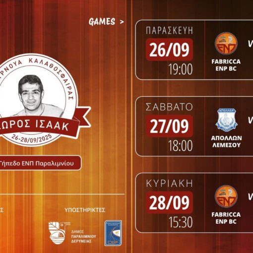 📖Περίπου 20“ ➡Με νικήτρια τη Ρουμανική Valcea, ολοκληρώθηκε σήμερα στο Παραλίμνι το 7ο Τουρνουά στη μνήμη του ήρωα Δώρου Ισαάκ, καθώς η ομάδα της Ρουμανίας κέρδισε σήμερα τη διοργανώτρια με 79-71 και σε συνδυασμό με […]